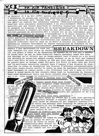 Où il est question de choses encore plus fortes: "Breakdown" (les Clash furieux de "London Calling" massacrent "Le Bal des Laze" de Polnareff en intro), "Gary Gilmore" (swing mortel). Les WC3 bombent les murs gris en lettres rouges incohérentes et s'enfuient en courant.